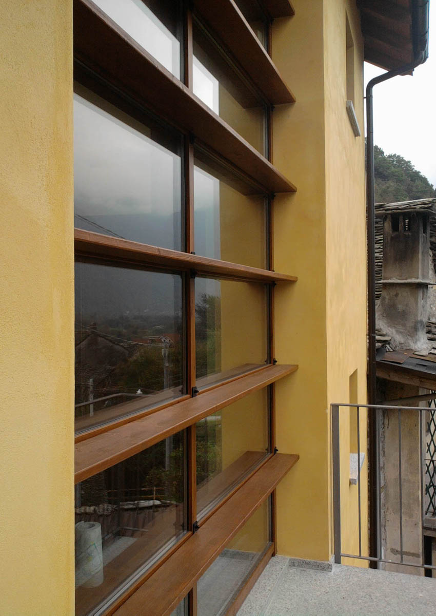 Il vano scala è stato articolato in modo da ricordare una vecchia torre, con caratteri formali dell'architettura autoctona.