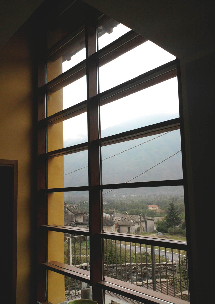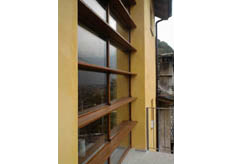 La vetrata verrà dotata di frangisole in legno per migliorarne il comfort interno e l'inserimento ambientale.