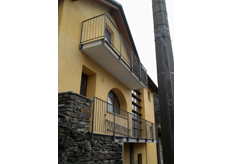 La scelta progettuale è stata quella di evidenziare i due corpi distinti del rustico con l'inserimento di una facciata vetrata nella porzione di edificio contenente i percorsi di