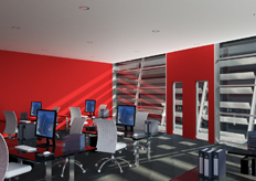 studio della posizione ottimale delle postazioni operative e la scelta cromatica della tinteggiatura delle pareti (si è scelto il rosso perchè è il colore della produttivita e con il